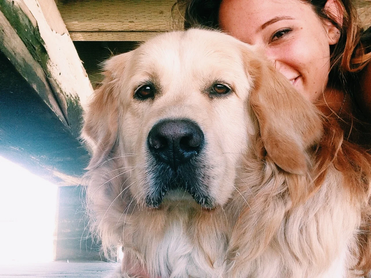 Accompanied by her pup, Grizzy